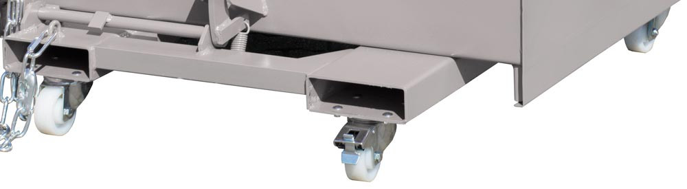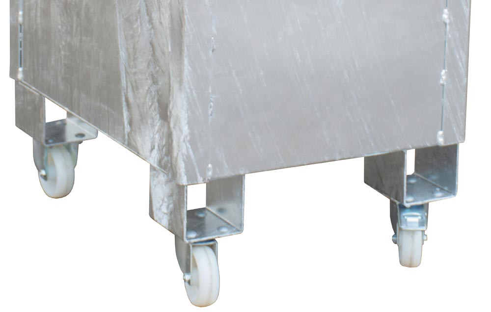 ∙ 2 Lenk- und 2 Bockrollen aus Polyamid (1 Lenkrolle mit Feststeller) ∙ Bauhöhe 125 mm, Ø 100 mm · Passend für Behälter ab Volumen 90 l