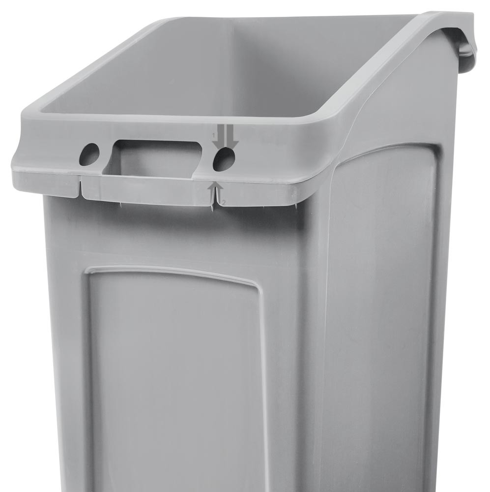 ∙ Hergestellt aus bruchfestem Polyethylen (PE), praxisbewährt selbst unter harten Innen- und Außenbedingungen ∙ Für eine zweckorientierte Lösung für die platzsparende Abfallentsorgung unter dem Tisch ∙ Behälter mit Lüftungskanälen ∙ Form für geringen Platzbedarf ∙ Ideal für vielseitge Einsatzbereiche wie z. B. Hotelhallen, öffentliche Bereiche, Kantinen ∙ Große schräge Öffnung bietet mehr Zugang unter dem Tisch