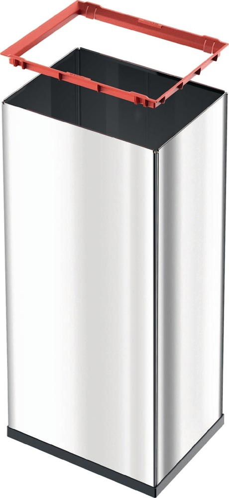 Großraum-Abfallbox, Volumen 35 l, BxTxH 340x260x500 mm, Gehäuse Edelstahl, Kunststoff-Schwingdeckel schwarz E6042815