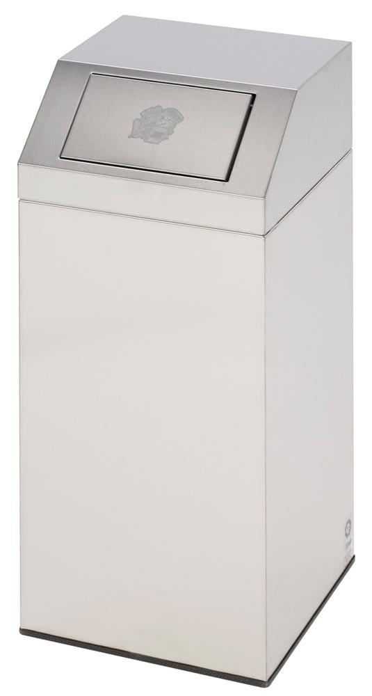 ∙ Hergestellt aus Edelstahlblechen ∙ Zur praktischen Entleerung mit abnehmbarem Kopfteil ∙ Selbstschließende Einwurfklappe ∙ Standardmäßig mit herausnehmbarem Edelstahl-Inneneimer ∙ Bodenschonender Kantenschutz · Inneneinsatz aus Edelstahl im Lieferumfang enthalten