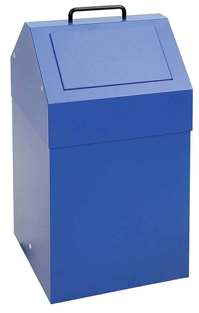 ∙ Aus verzinktem Qualitäts-Stahlblech ∙ Abnehmbares Oberteil mit selbstschließender, feuer- und geruchshemmender Einwurfklappe ∙ Extra lang heruntergezogenes Kopfteil hält die Abfalltüte und verdeckt gleichzeitig hässliche Tütenränder ∙ Zur Innenaufstellung geeignet · Umweltfreundliche Pulverbeschichtung – fünf auffällige Sortierfarben
