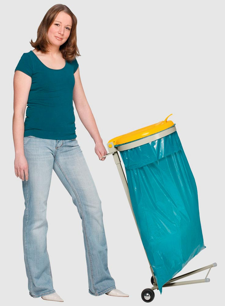 Abfallsammler, 1-fach, mit 2 Laufrollen, eisenglimmer, Deckel gelb aus Kunststoff, BxTxH 460x500x980 mm