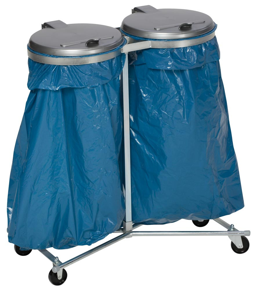 Abfallsammler, 2-fach, mit Rollen, verzinkt, BxTxH 860x500x1020 mm, Deckel silber