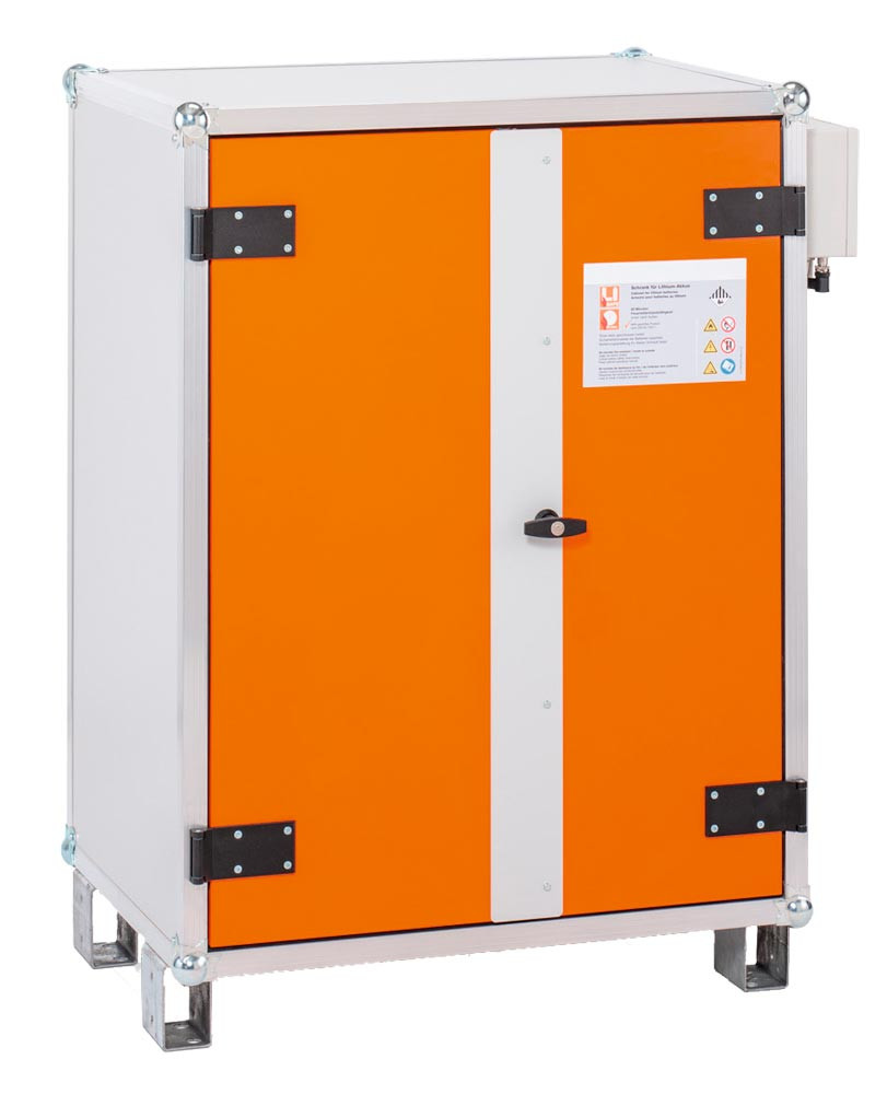 Akku-Ladeschrank, Premium Plus, strombetriebener Rauchmelder, BxTxH 800x660x1110mm, Tür orange, Stapelfüße, Korpus grau E6480007
