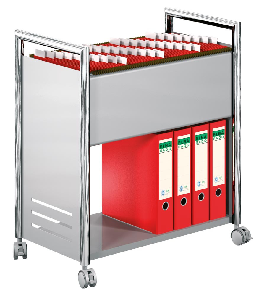 Aktenwagen, 1 Boden, 1 Hängeregistratur, LxBxH 660x375x730 mm, chrom/silber