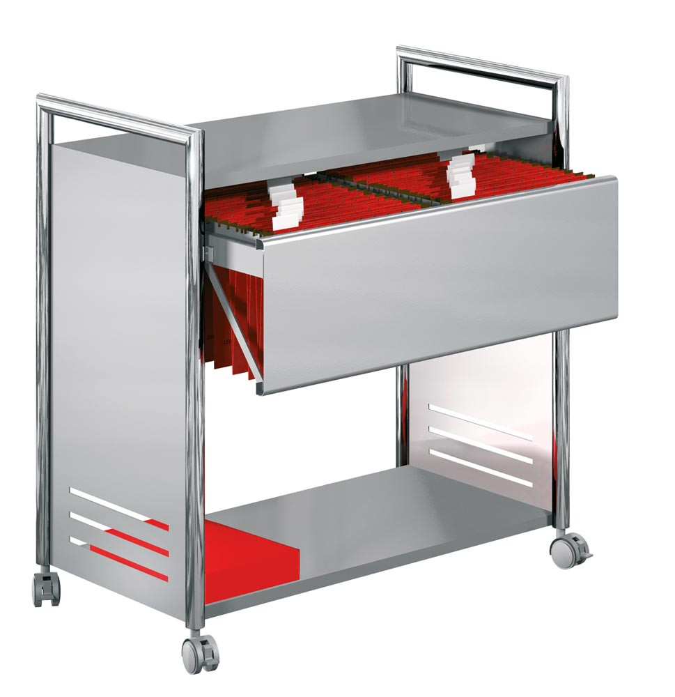Aktenwagen, 1 Boden, 2 Hängeregistraturen, LxBxH 815x435x800 mm, chrom/silber E851024