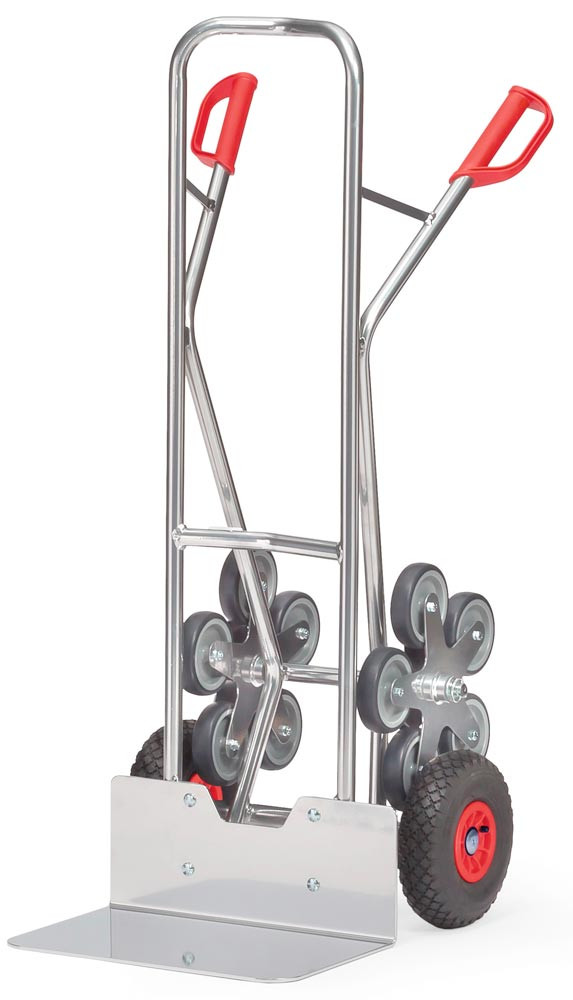 Alu-Treppenkarre, Schaufel-BxT 480x300 mm, HxB 1300x590 mm, Traglast 200 kg, Luftbereifung 260x85 mm + 2 fünfarmigen Radsternen