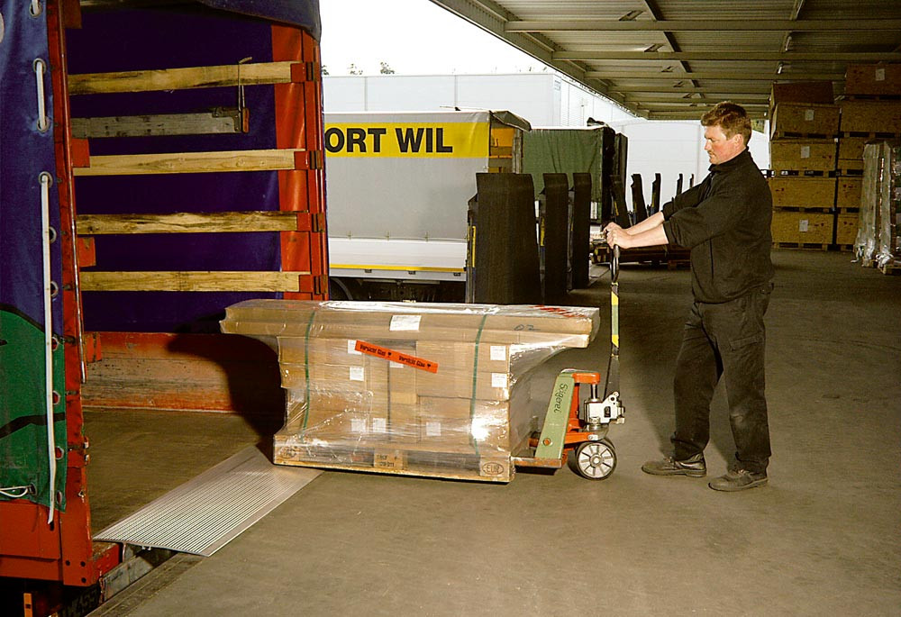 ∙ Rutschfeste Fahrfläche aus Aluminium ∙ Mit nur einem Anschlag versehen ∙ Dort zu verwenden, wo zwischen LKW und Laderampe nur geringe oder keine Höhenunterschiede vorhanden sind ∙ Sehr leicht ∙ Äußerst robust ∙ Witterungsbeständig