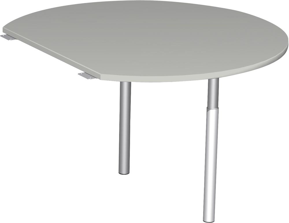 Anbautisch, rund, BxTxH 1200x1047x680-820 mm, höhenverstellbar, Platte lichtgrau, Stützfüße silber, inkl. Montagesatz