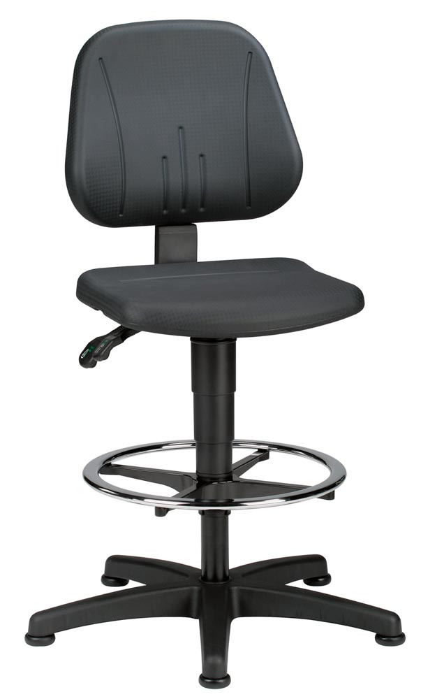 Arbeitsdrehstuhl, Sitz Höhe 580-850 mm, PU-Schaum schwarz, mit Gleitern u. Fußring