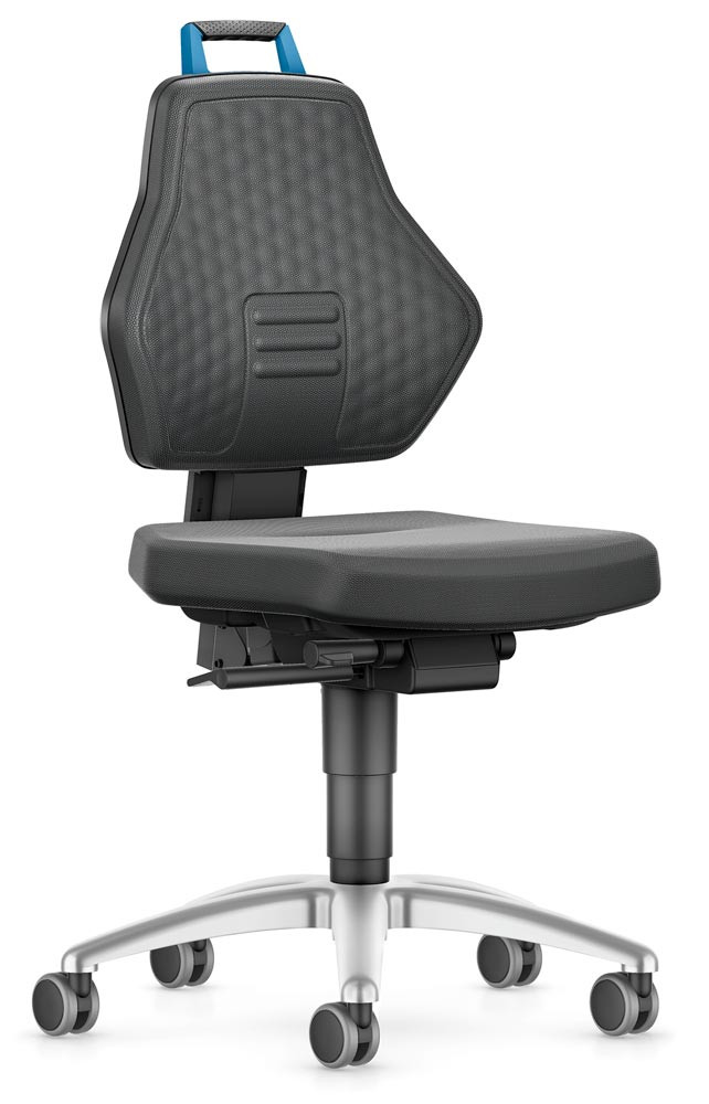 Arbeitsdrehstuhl, autom. Gewichtsregulierung, Ergonomie-Paket, Tragegriff, Kunstleder schwarz, Gleiter und Fußring E6408658