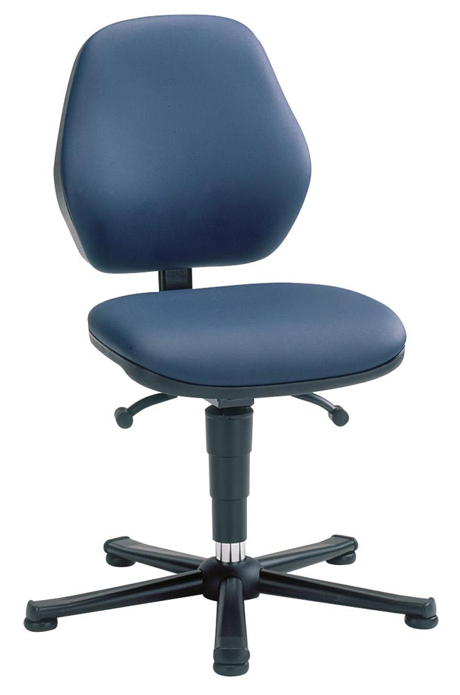 Arbeitsdrehstuhl für Werkstatt, Labor, Oberfläche Kunstleder blau, Gleiter Sitz Höhe 470-610 mm E841623