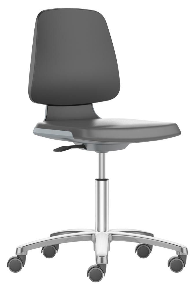 Arbeitsdrehstuhl mit Flex-Rückenlehne u. Sitzkante, Sitzschale anthrazit, Sitz Kunstleder schwarz, Rollen, Sitz Höhe 450-650 mm