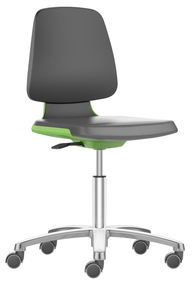 Arbeitsdrehstuhl mit Flex-Rückenlehne u. Sitzkante, Sitzschale grün, Sitz Supertec schwarz, Rollen, Sitz Höhe 450-650 mm