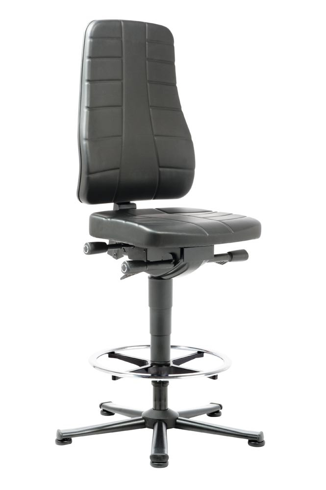 Arbeitsdrehstuhl mit Sicherheitsgasfeder, Sitz Kunstleder, schwarz, mit Gleitern und Fußring, Sitz Höhe 620-900 mm