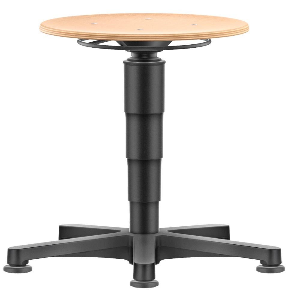 Arbeitshocker mit Gasfeder-Höhenverstellung, mit Holz-Sitzfläche und Gleitern, Sitzfläche Durchm. 400 mm, Sitz H 450-650 mm