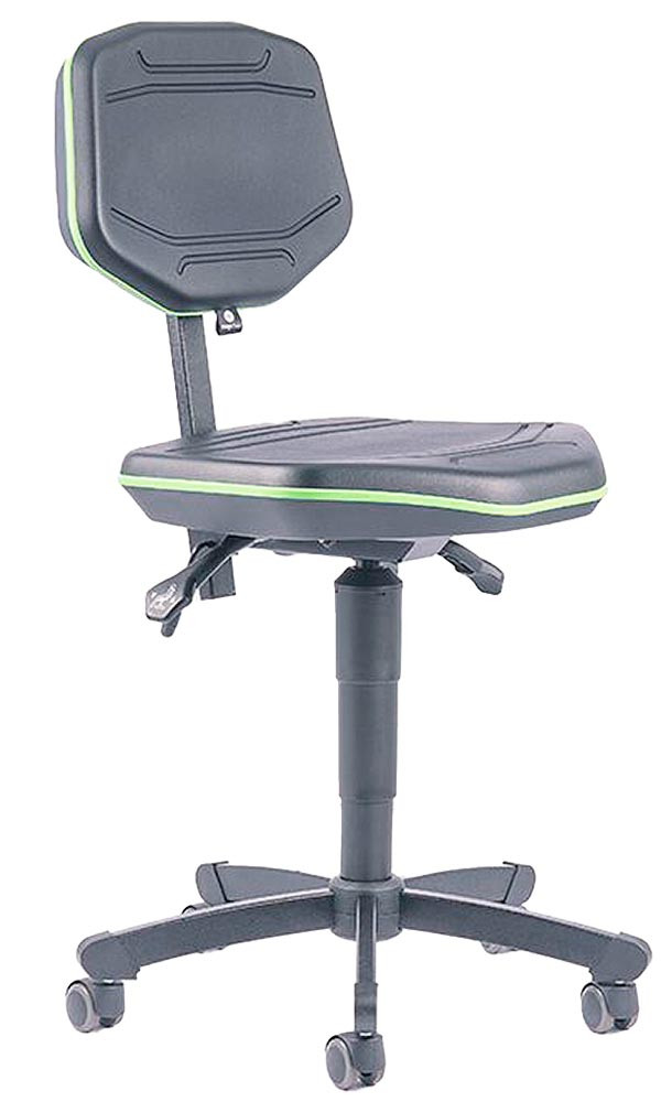 Arbeitsstuhl, Sitz und Rückenlehne PU-Schaum, Sitz Höhe 515-655 mm, schwarz, Keder grün, mit Rollen, belastbar bis 120 kg E6475887