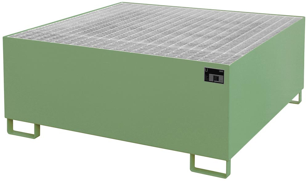 Auffangwanne, Stahl, Auffangvolumen 1000 l, BxTxH 1460x1460x630 mm, ohne Abfüllaufsatz, RAL 6011