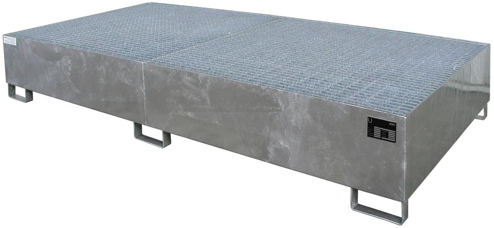 Auffangwanne, Stahl, Auffangvolumen 1000 l, BxTxH 2650x1300x435 mm, ohne Abfüllaufsatz, verzinkt