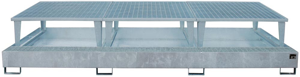 Auffangwanne, Stahl, Auffangvolumen 1000 l, BxTxH 3850x1460x780 mm, mit Abfüllaufsatz, verzinkt