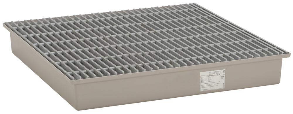 Auffangwanne aus GFK, mit GFK-Gitterrost, Auffangvolumen 220 l, BxTxH 1280x1280x200 mm