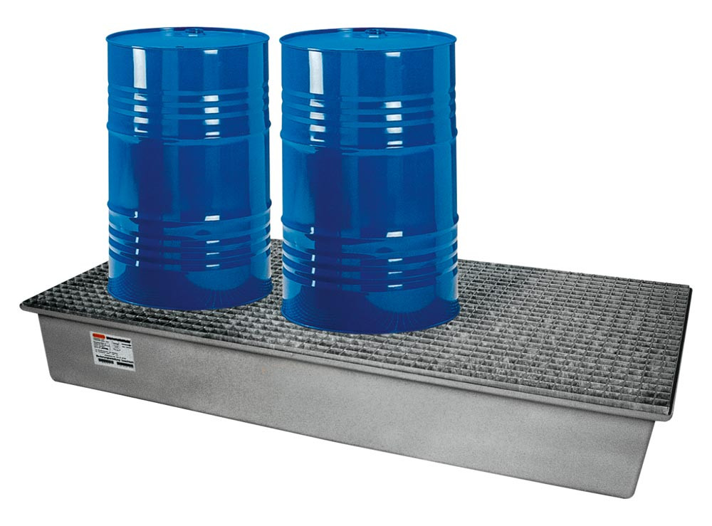 Auffangwanne aus GFK, mit verzinktem Gitterrost, Auffangvolumen 220 l, BxTxH 850x1880x200 mm