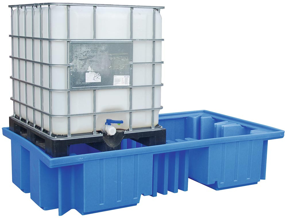 Auffangwanne aus PE, BxTxH 1360x2340x510 mm, für 2xKTC 1000 Liter, Auffangvolumen 1000 Liter, mit integrierter Abstellfläche