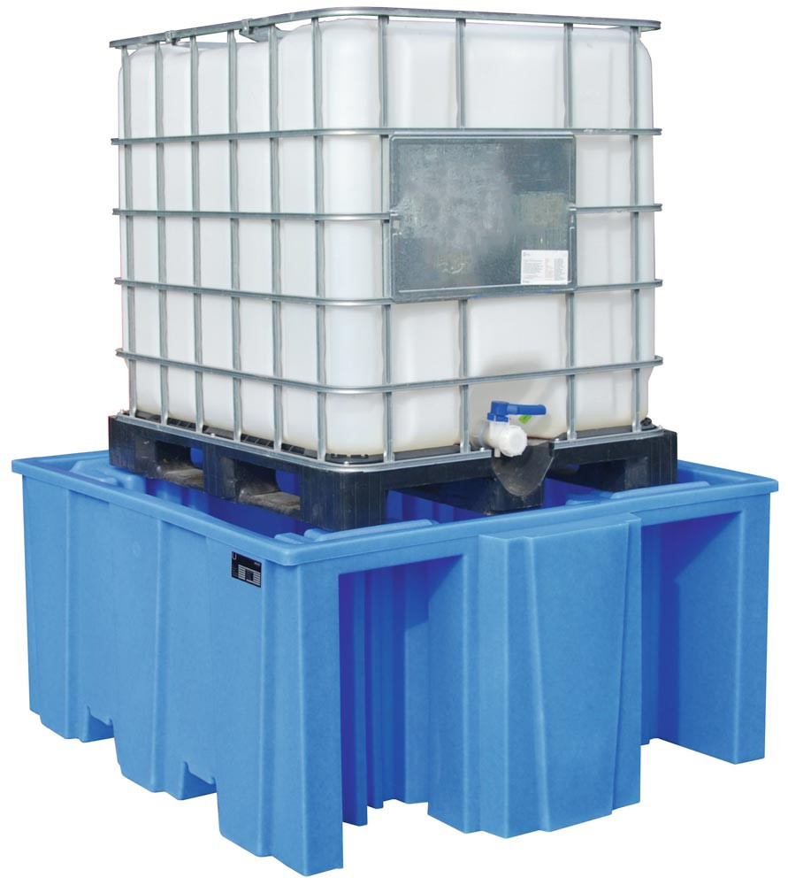 Auffangwanne aus PE, BxTxH 1455x1590x715 mm, für 1xKTC 1000 Liter, Auffangvolumen 1000 Liter, mit integrierter Abstellfläche