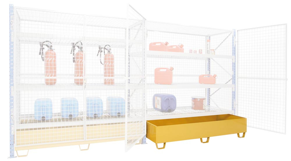 ∙ Passend zu Regalen B x T 1800 x 800 mm ∙ Auffangvolumen 375 Liter ∙ Farbe RAL 1028 Melonengelb