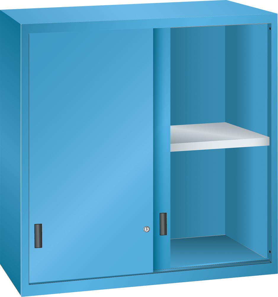 Aufsatzschrank mit Vollblechschiebetüren, BxTxH 1023x572x1000 mm, 1 Verstellboden, RAL 5012, passend zu Schubladenschrank 54x27 E