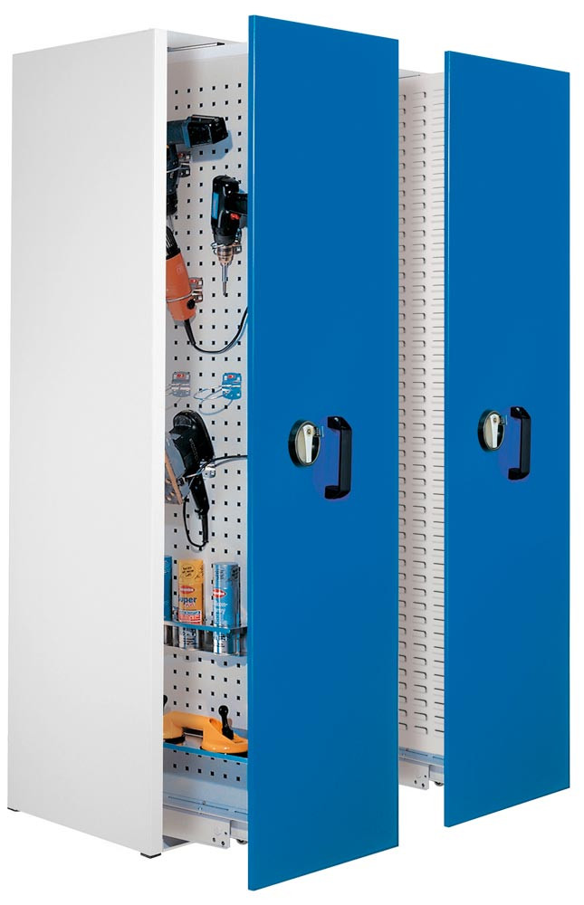Auszugschrank, 2 Vertikalauszüge mit 2 Lochplatten, BxTxH 1100x600x2000 mm, RAL 7035/5010 E849182