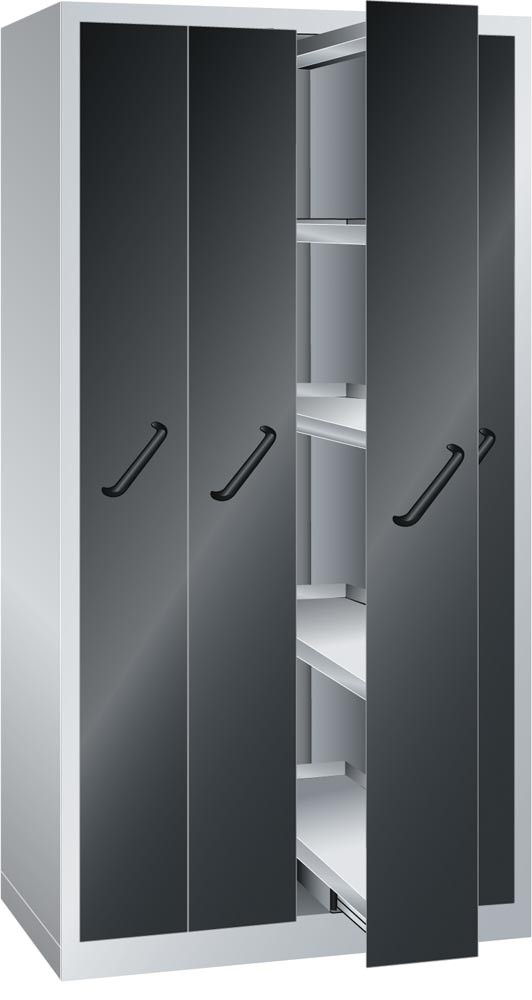 Vertikalauszugschränke ermöglichen eine platzsparende Lagerung von Werkzeugen,