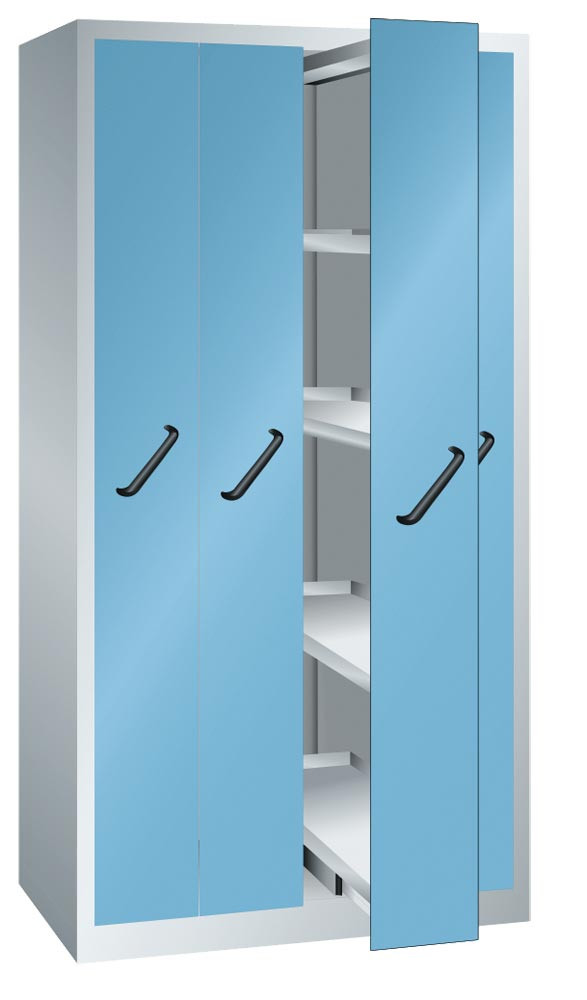 Auszugschrank, 4 Auszüge mit Böden, BxTxH 1000x695x1950 mm, Traglast je Auszug 200 kg, RAL 7035/5012 E6011400