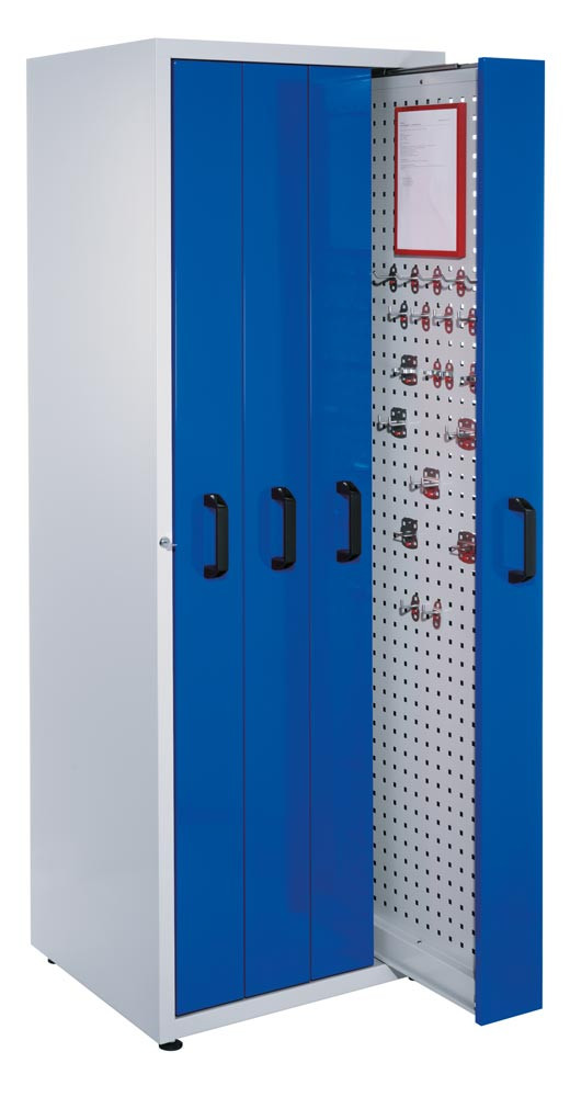 Auszugschrank, 4 Auszüge mit Lochplatten, BxTxH 720x600x2000 mm, RAL 7035/5010 E863654