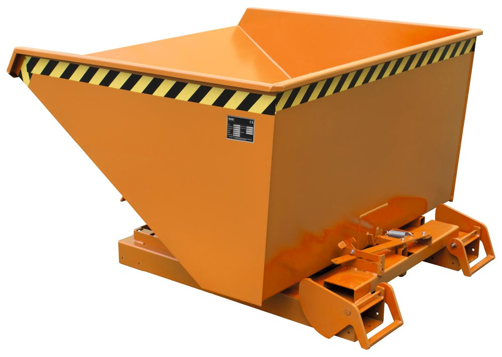 Automatischer Kippbehälter, LxBxH 1485x1570x865 mm, Vol. 0,9 cbm, Traglast 1000 kg, RAL 2000 gelborange