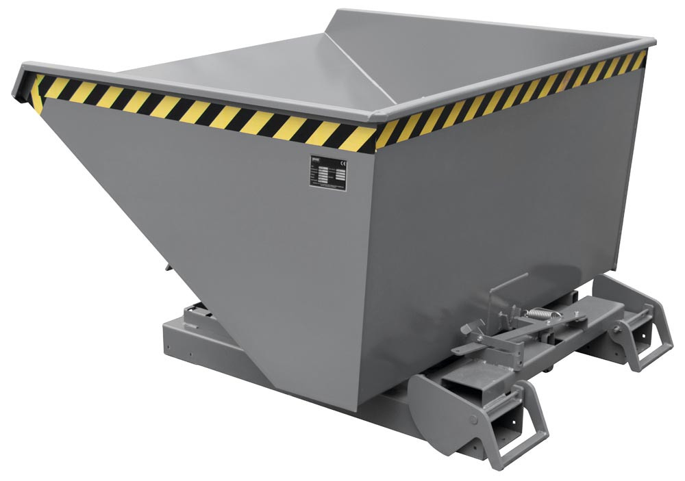 Automatischer Kippbehälter, LxBxH 1485x1570x865 mm, Vol. 0,9 cbm, Traglast 1000 kg, RAL 7005 mausgrau