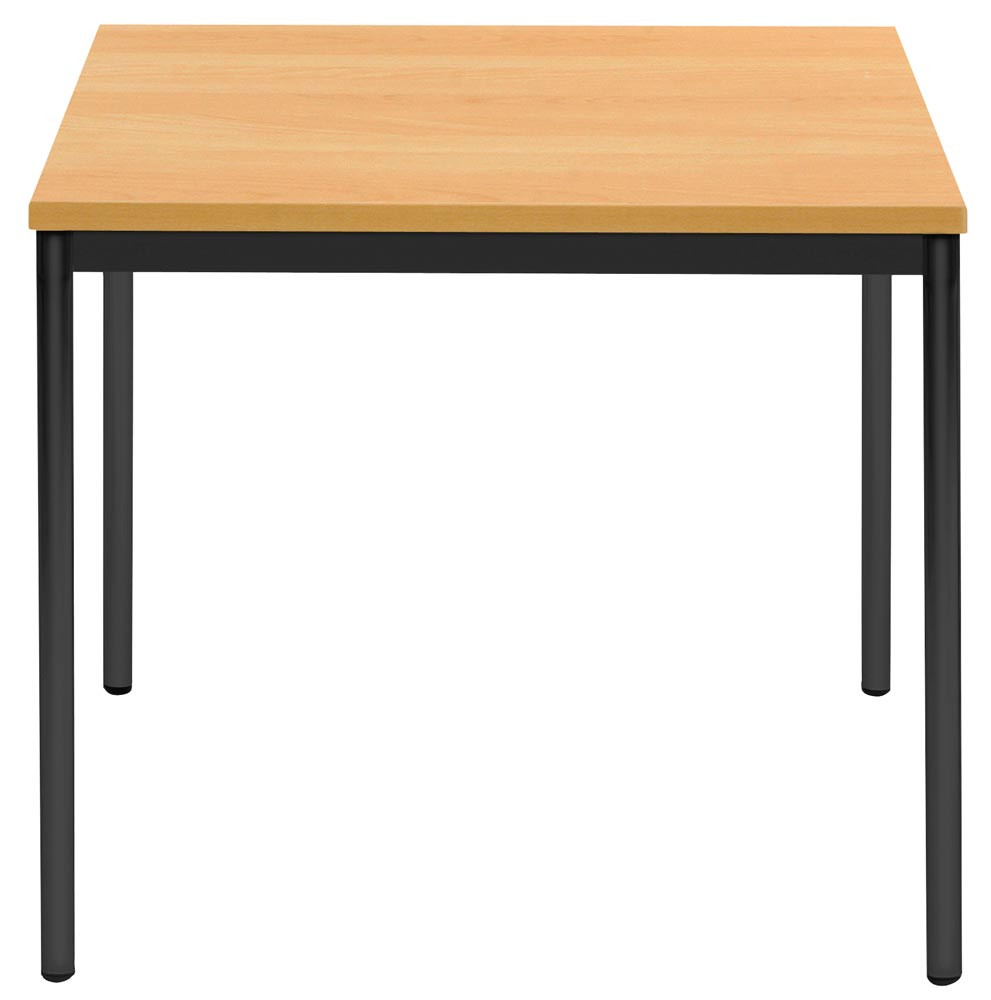 Besprechungstisch, BxTxH 800x800x740 mm, Rundrohrgestell, schwarz, Tischplatte 25 mm, buche