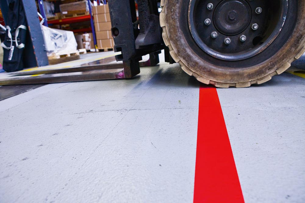 Drehbewegungen von Flurförderzeugen auf dem Band sind zu vermeiden.