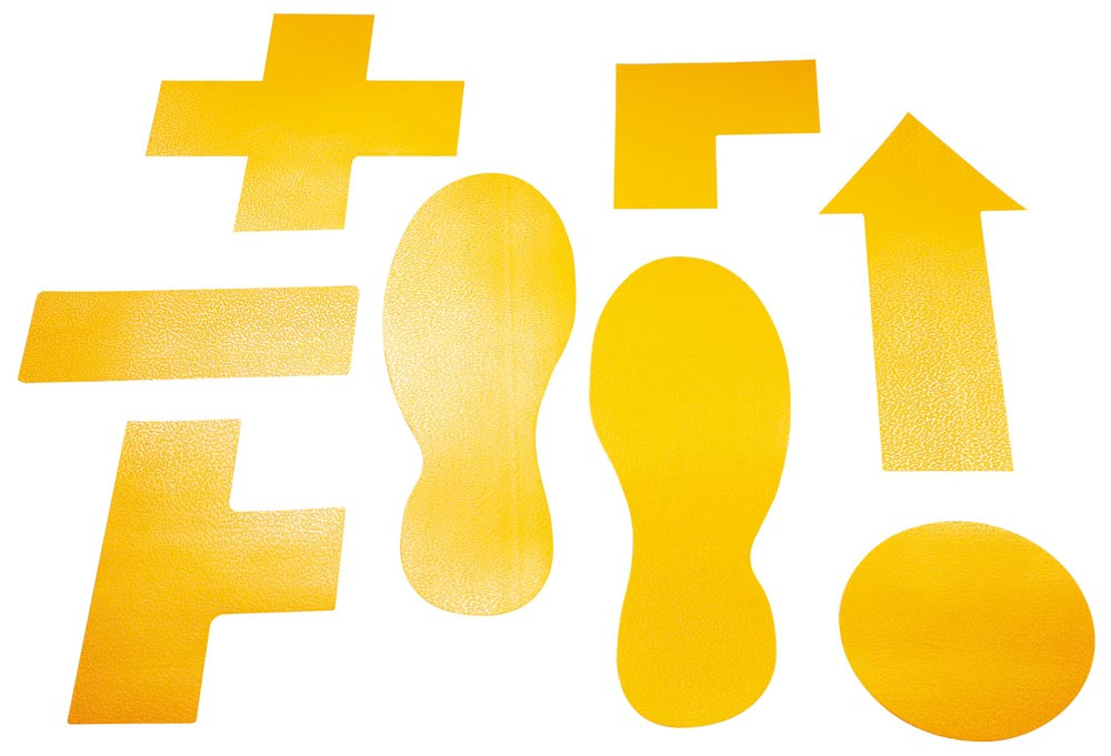 Bodenmarkierung, selbstklebend, Kreuz-Form, LxB 150x150 mm, Farbe gelb, VE 10 Stück, Mindestabnahme 2 VE E6042163