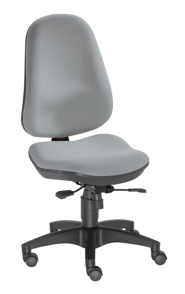 Bürodrehstuhl, Gr.M, Sitz-BxTxH 460x440x430-530 mm, Lehnenh. 560-610 mm, Punkt-Synchronm., Lendenwirbelstütze, Bandscheibensitz, Bezug grau
