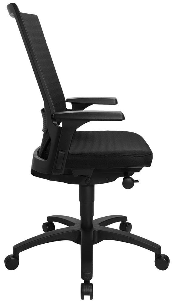mit Auto-Synchron-Technik (mit Armlehnen) ∙ für überwiegend sitzende Tätigkeiten ∙ mit automatischer körpergewichtsabhängiger Federkrafteinstellung, in vorderster Position arretierbar ∙ synchrone Sitz- und Rückenlehnen-Neigung ∙ stabiles schwarzes Polyamidfußkreuz ∙ gepolsterte 3D-Rückenlehne mit stabilem Kunststoffrahmen ∙ höhenverstellbare Armlehnen ∙ ergonomisch geformter Muldensitz ∙ Bezug aus 100% strapazierfähigem Polyester ∙ Sitzfläche B 470 x T 430 mm ∙ Lehnenhöhe 560 mm ∙ Rollen für weichen Boden Lieferung erfolgt zerlegt