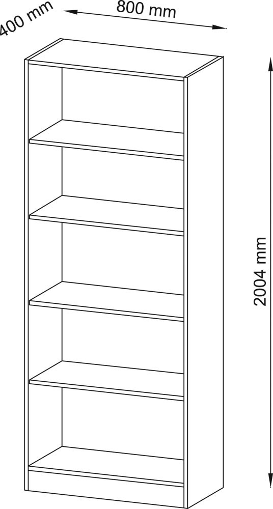 Büroregal, BxTxH 800x400x2004 mm, 5 OH, 4 Böden, buche