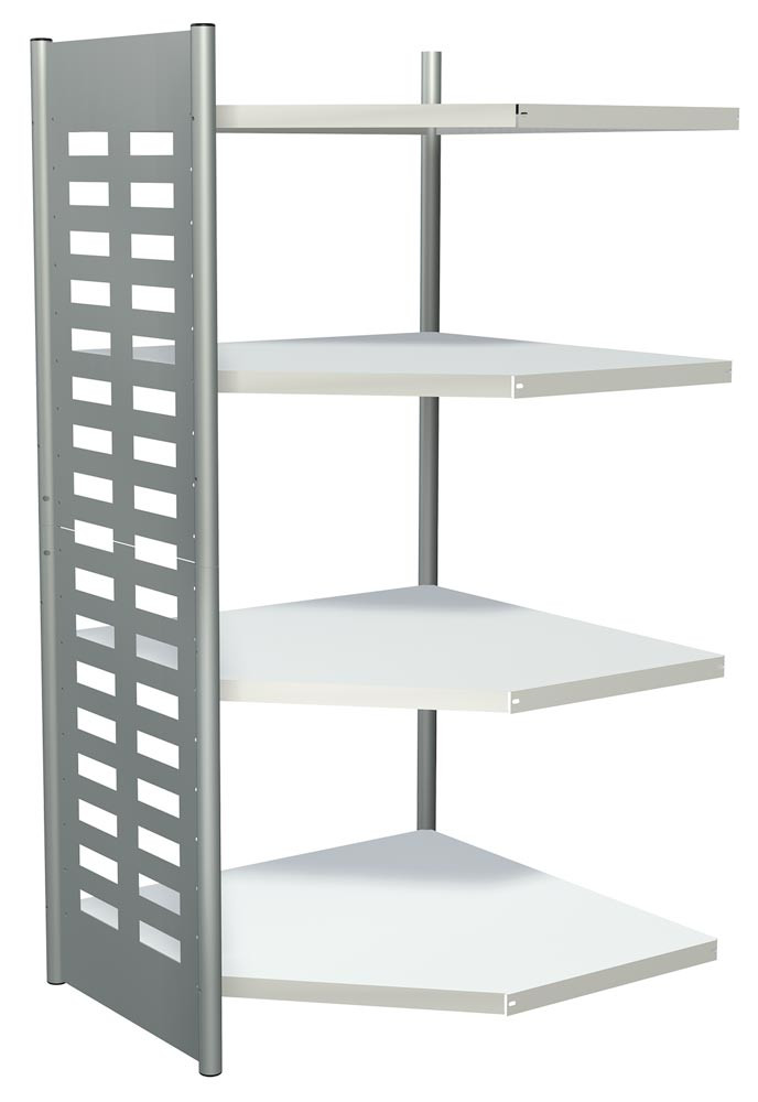 Büroregal, Eckfeld, BxTxH 400x600x1800 mm, 4 Böden, alusilber/lichtgrau, OHNE Abschlussrahmen