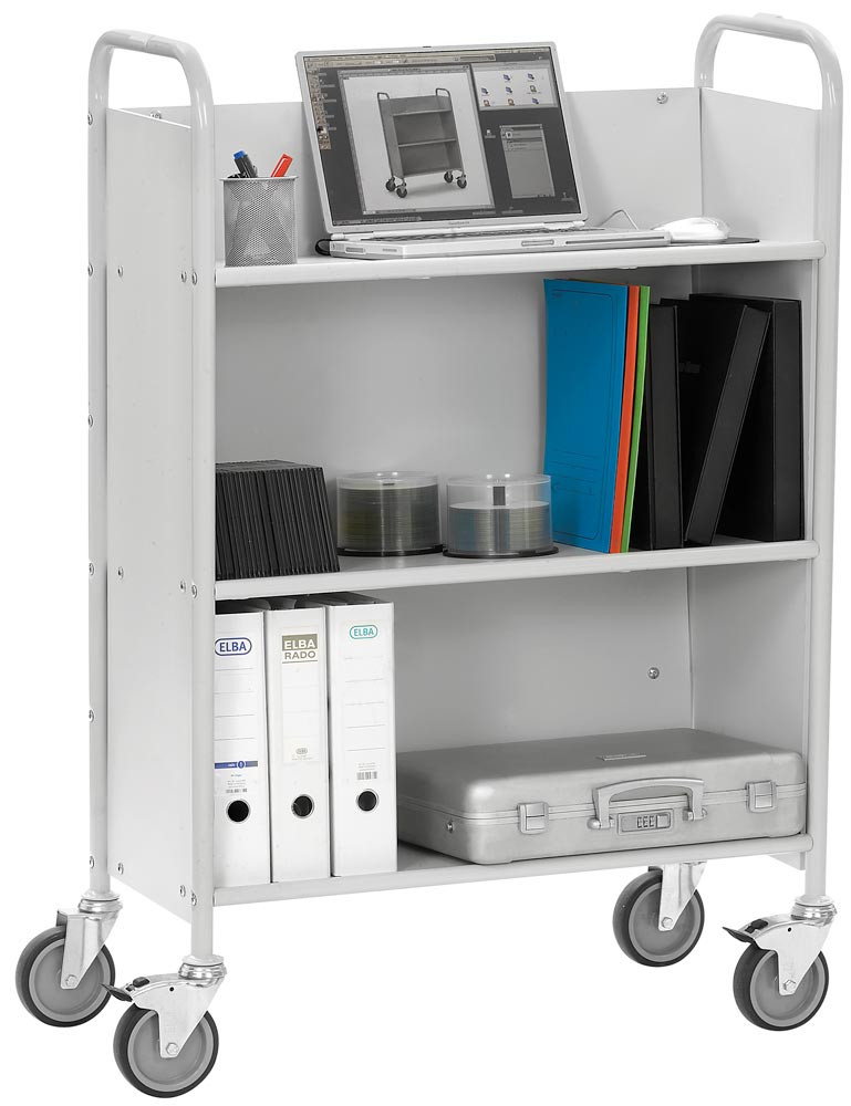 Bürowagen, 3 geneigten Böden, Seitenwände, Rückwand, LxBxH 855x400x1218 mm, Traglast 150 kg, lichtgrau/hellgrau