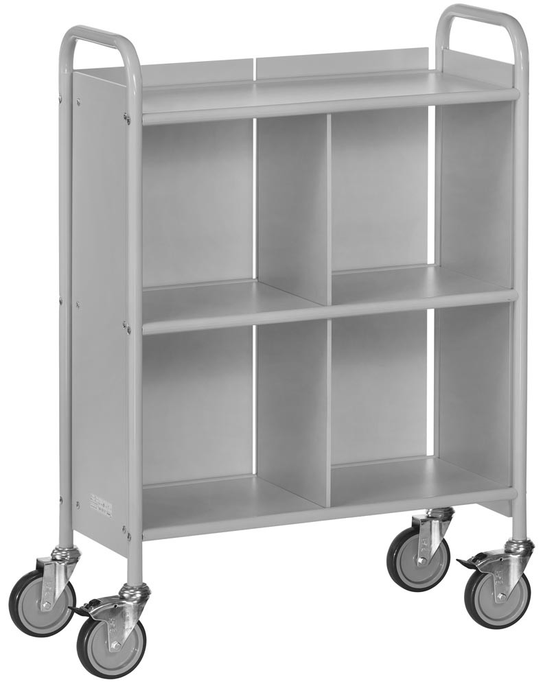 Bürowagen 3 Böden, Mittelwand, Seitenwände, Rückwand, LxBxH 810x385x1100 mm, Traglast 150 kg, lichtgrau/hellgrau