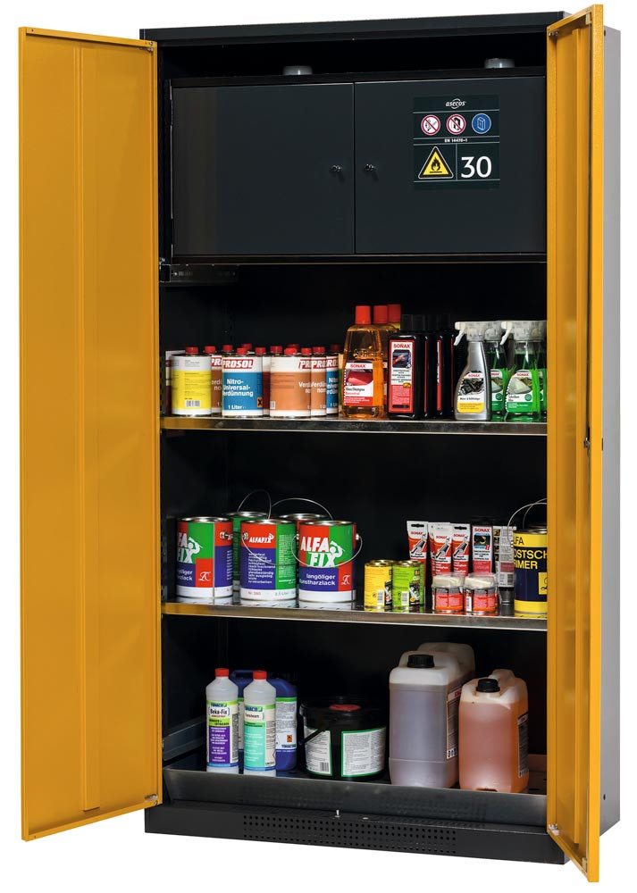 ∙ Sicherheitsbox zugelassen zur Lagerung enzündbarer Flüssigkeiten, Spraydosen usw.., Feuerwiderstandfähigkeit 30 Minuten (typgeprüft)