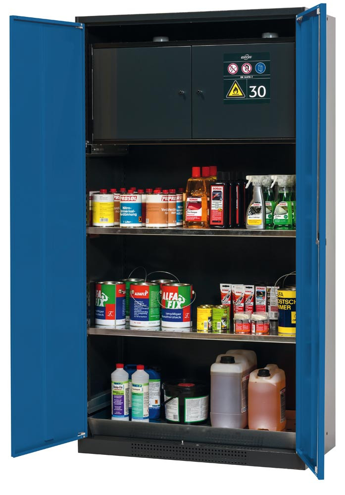∙ Sicherheitsbox zugelassen zur Lagerung enzündbarer Flüssigkeiten, Spraydosen usw.., Feuerwiderstandfähigkeit 30 Minuten (typgeprüft)