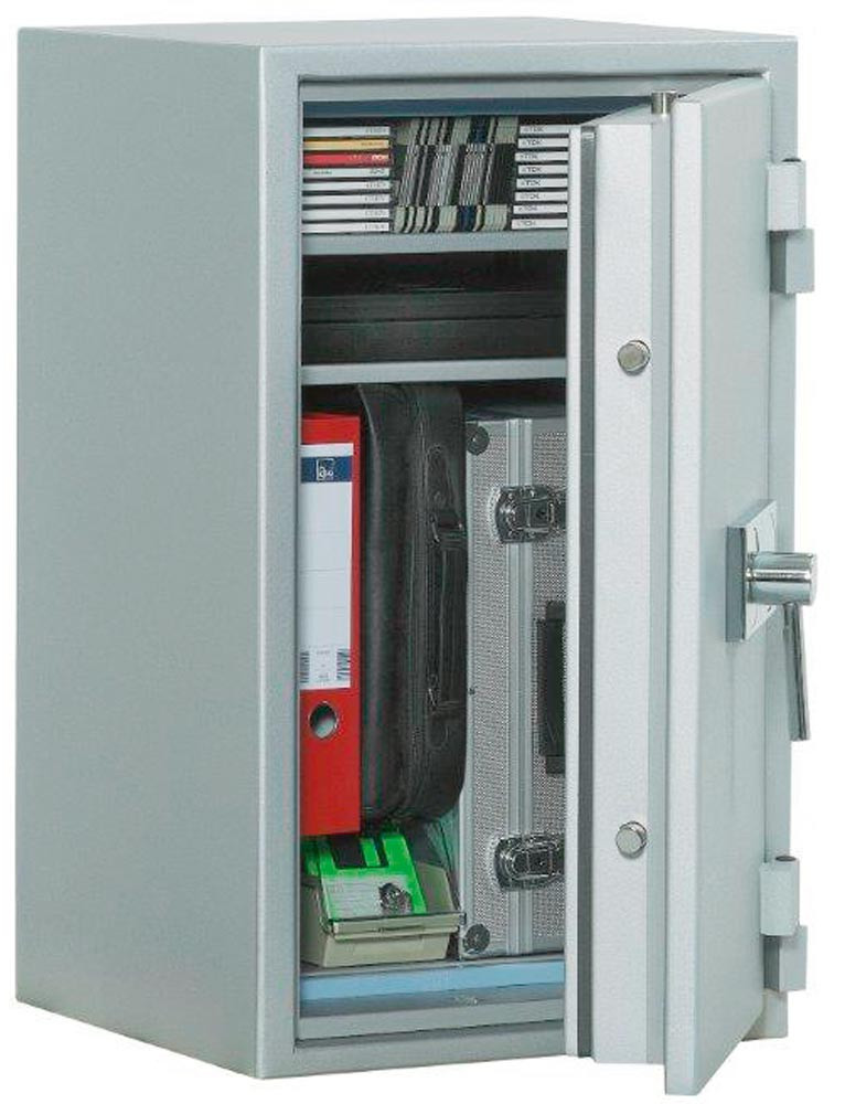Dokumentenschrank, Sicherheitsstufe B + S2, S60P, BxTxH 463x427x615 mm, Volumen 57 l, 1 Boden, Kapazität 4 Ordner, 1-türig, RAL 7035 lichtgrau E852135