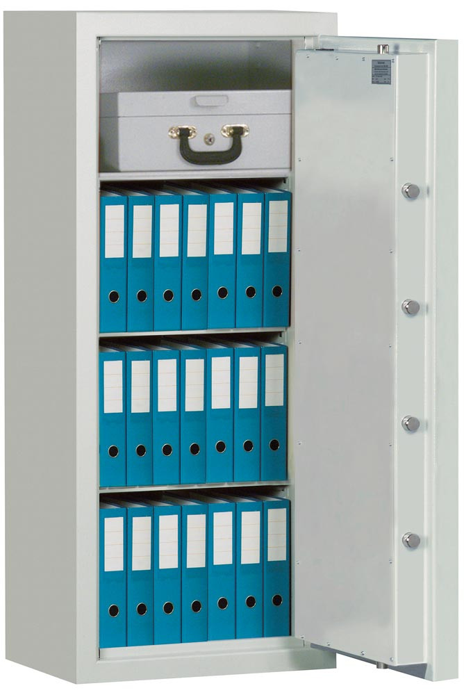 Dokumentenschrank, Sicherheitsstufe Kl. II, LFS30P, BxTxH 636x510x1006 mm, Volumen 159 l, 2 Böden, Kapazität 12 Ordner, RAL 7035 lichtgrau