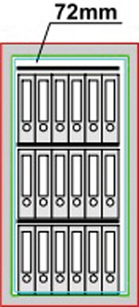 Dokumentenschrank, Sicherheitsstufe Kl. II, LFS30P, BxTxH 636x510x1206 mm, Volumen 194 l, 3 Böden, Kapazität 18 Ordner, RAL 7035 lichtgrau
